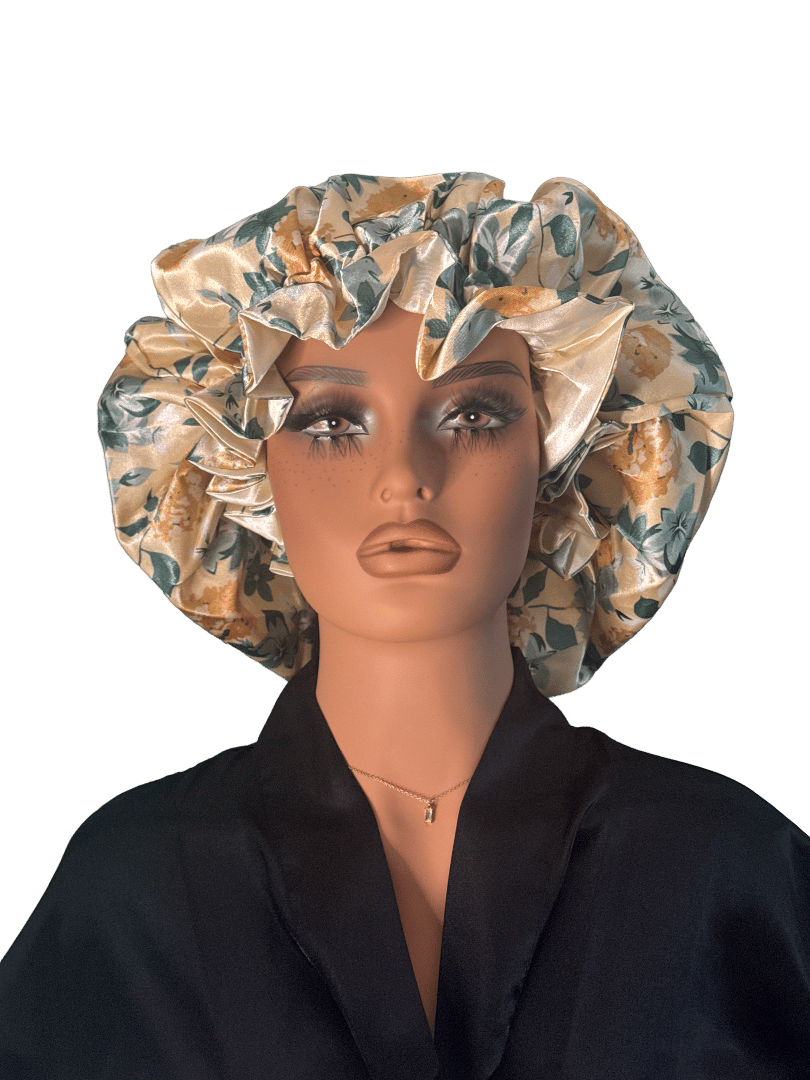 Our double satin floral sleep cap prevents bed head & provides twice the preservation of hair by sealing in moisture for long lasting results leaving your hair hydrated and healthy.